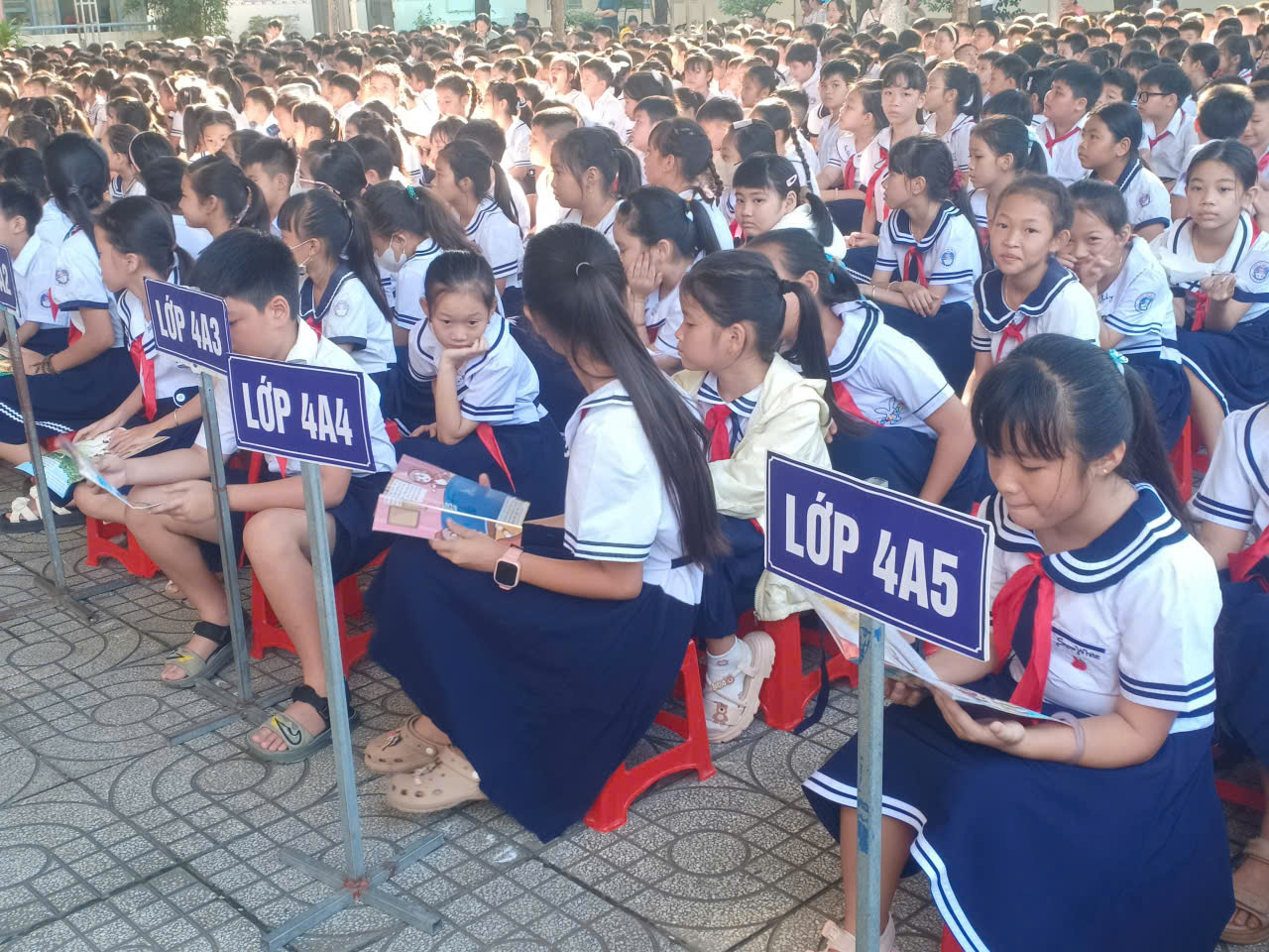 Buổi lễ diễn ra trong không khí vui tươi, phấn khởi với các tiết mục văn nghệ chào mừng do học sinh biểu diễn, thể hiện tinh thần học tập và niềm vui đến trường.