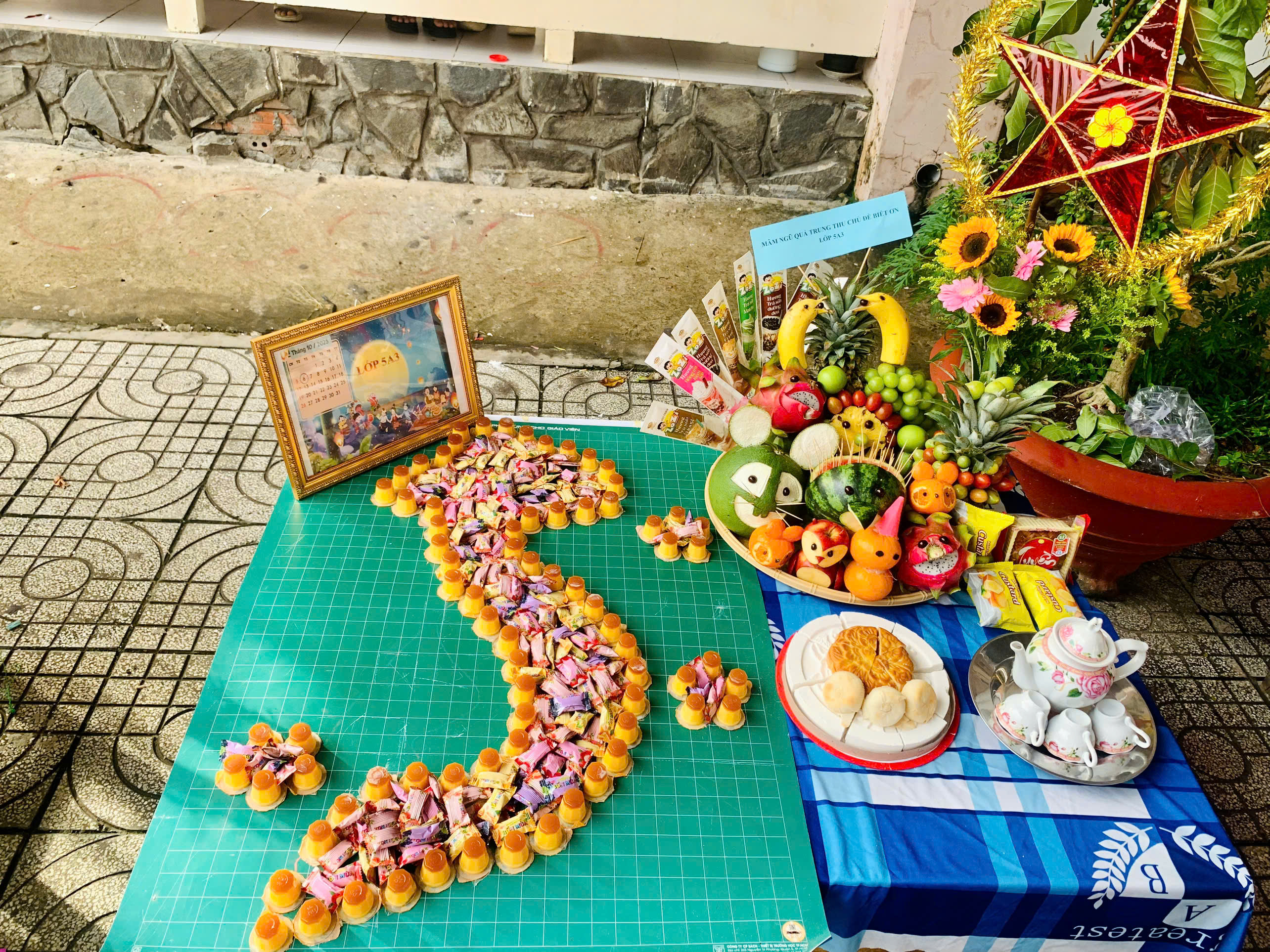 Các lớp đã cùng nhau thể hiện sự khéo léo, tinh tế qua từng mâm cỗ với đèn lồng, bánh nướng, bánh dẻo, hoa quả và những mô hình trang trí sáng tạo. Mỗi mâm cỗ là một câu chuyện nhỏ về tình đoàn kết, tinh thần tập thể và lòng biết ơn.